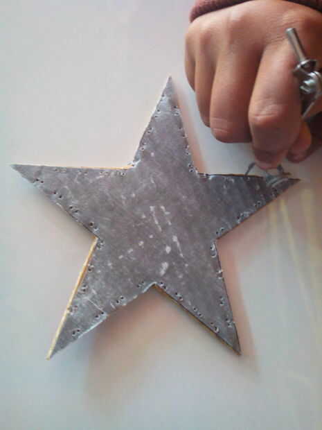Después de cortar los objetos necesarios empezar haciendo los agujeros para los LEDs usando un objeto puntiagudo como una brújula.