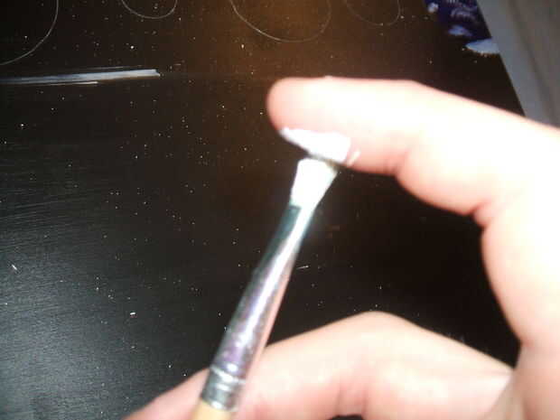 Haz un poco de pintura blanca y un pincel más pequeño. Practicar esta parte en el fregadero y estar preparados para limpiar, como se pone bastante spattery. saturar las cerdas del pincel con blanco, luego tire el dedo a través de la perpendicular, crear una acción de flick de cerdas del cepillo. Esto lanzará pequeñas gotitas de pintura aproximadamente en la dirección apunta el borde exterior del cepillo.
