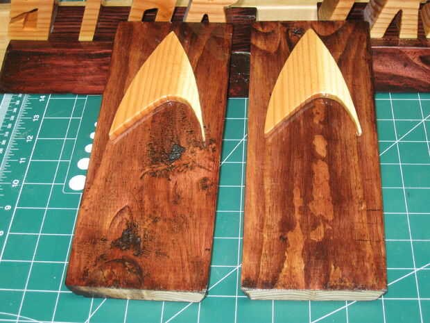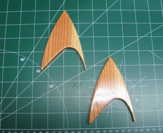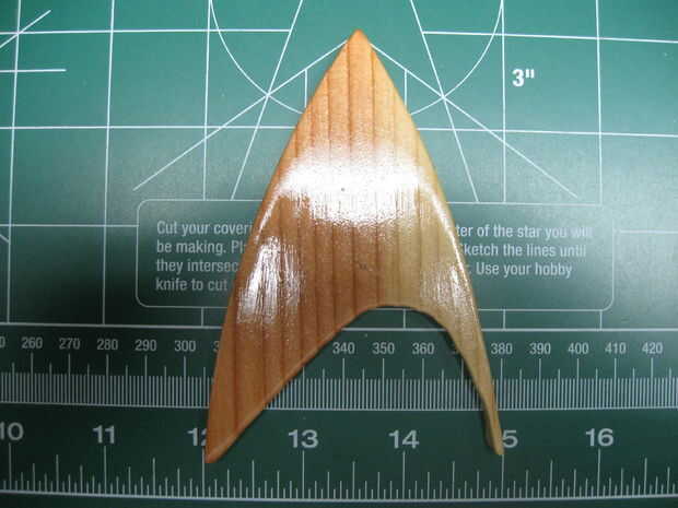 Cuidadosamente había cortado con mi sierra de banda vertical y había terminado con papel de lija y ficheros. Entonces muescas en la base para dejar. Antes de ponerlo todo junto, mancharon la base de la nuez. Cuanto "STAR TREK" salí desnudo.