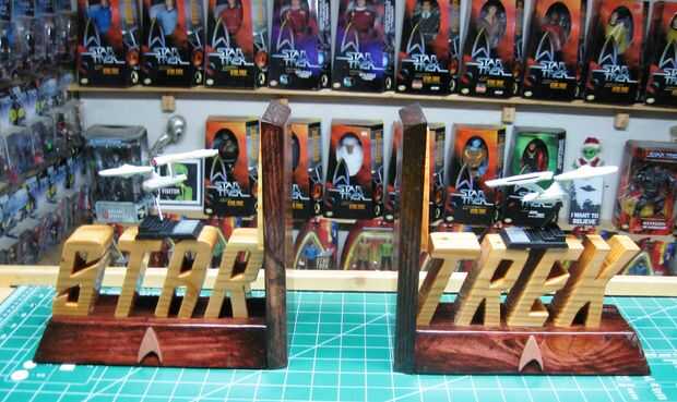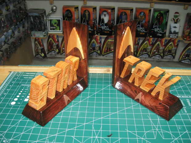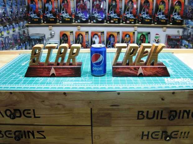 En cuanto a la inscripción de "Star Trek" les copié en papel. Me froté la parte posterior del papel con el lápiz. Luego voltea el papel encima y había pegado abajo a la madera y había trazado de las Letras con un borde recto. Pelado del papel y ta da, instant lettering.