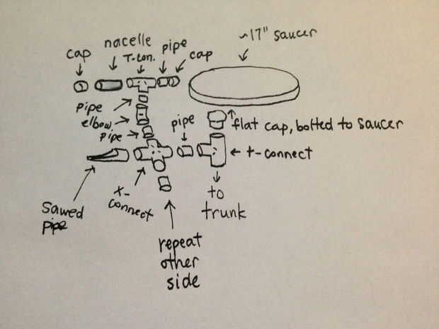Une la tapa plana a la sección de plato primero, luego construyeron el resto de la estructura de la empresa de tuberías y tubos. Los tubos y conectores fueron pegados con el pegamento de la pipa. La sección del plato de moqueta y el resto de la estructura por separado, luego pega la tapa T-conectar usando un pedazo pequeño de tubo entre ellos (no representado en el esquema porque me olvidé de incluirlo). He utilizado un montón de grapas cuando alfombrado, pero hizo que luego allí no eran ningún grapas sueltas dejando puntiagudos bits. También, puse cartulina debajo de la alfombra cortarlo, para proteger el piso y que contiene el corte de lío y alfombra de recortar las hojas.