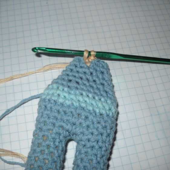 * 2 sc 1 dec ** 4 veces (12); con rosa * 2 sc 1 dec ** 3 veces (9); 2 sc 1 Dic 3 sc 1 dic (7); Fije apagado. Los últimos redondos en selección se realizan para que sea más sencillo coser el cuerpo a la cabeza.