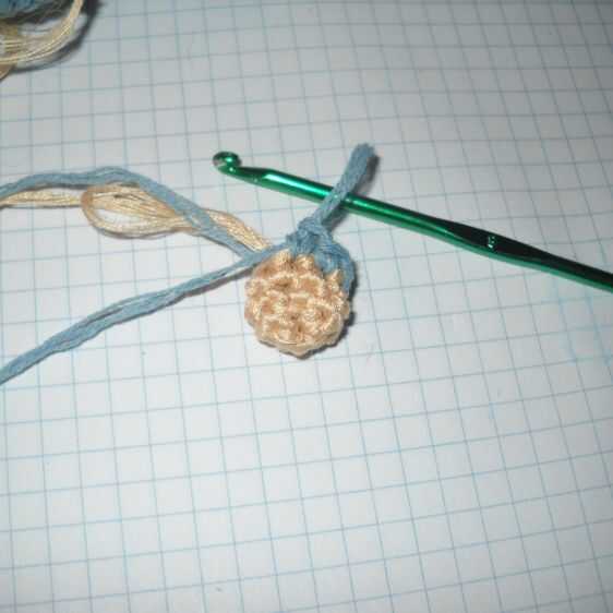 * 2 sc 1 inc ** 3 veces (9); 9 sc (9); Cambiar color en azul claro.