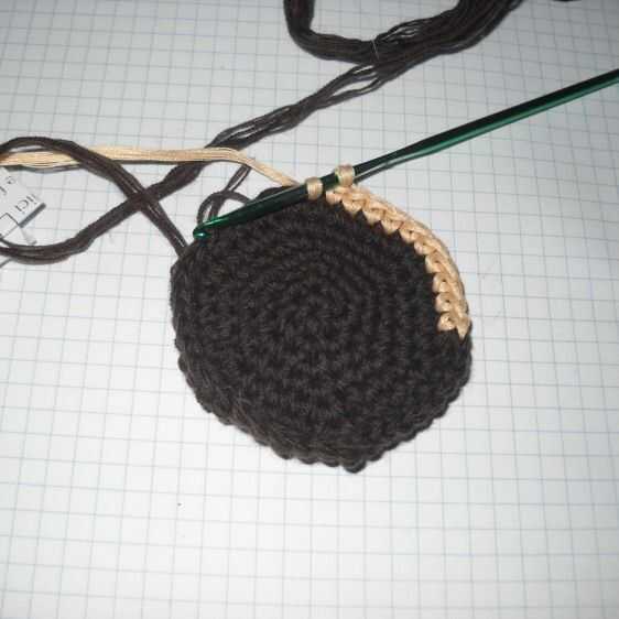 Ahora cambian de color en rosa, make 11 sc y cambio en brown (total de sc 42). Tenga en cuenta que de esta ronda te tienes que poner un ganchillo rosa más a cada lado. Vaya ganchillo: 42 sc de 2 rondas.
