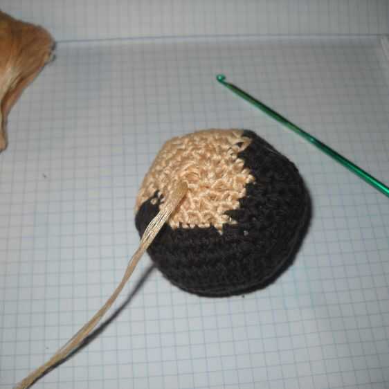 Deja una cola larga para coser el agujero y, después, a coser la cabeza al cuerpo.