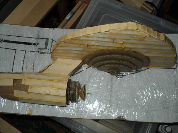 Al utilizar un montón de pegamento para pegar los palitos, algunos de ellos deformados como absorbe el líquido del pegamento en un lado. Acurrucó longitudinalmente y así tuve una cubierta ripply. Esperaba para una cancha de baloncesto como piso - tal vez por eso se hacen con uniones machihembradas.