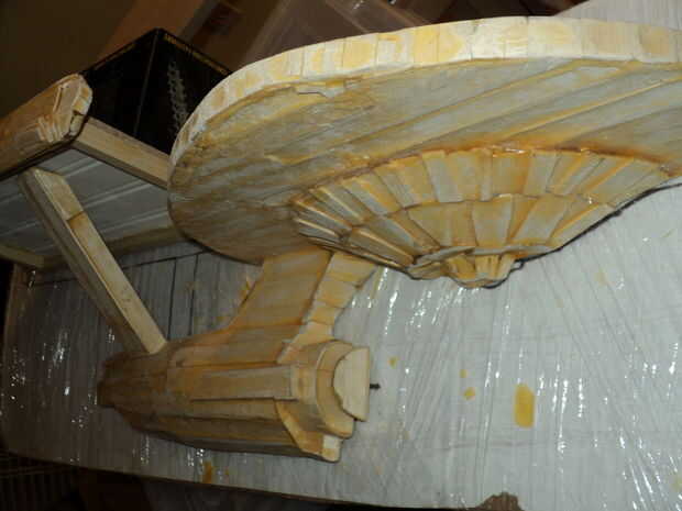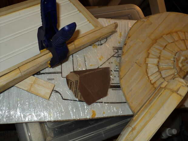 Pegamento el la parte inferior del soporte de motor warp en el cuerpo principal de la nave.