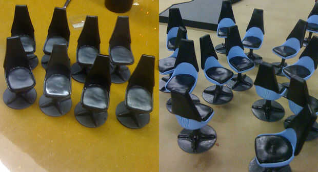 Entonces colar de múltiplos de la resina de uretano. Luego pintó la zona azul y añadió detalles impresos en la parte posterior. Todo lo consiguió entonces una capa transparente para bloquearlo todo.