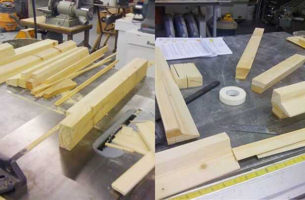 Comencé por romper los ángulos de las consolas de control en tres perfiles básicos. Luego arrancó los perfiles en la Sierra de mesa. Esto me dio el material para construir las consolas con.