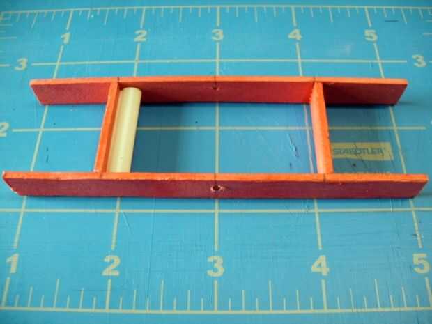 3. Mida la longitud de la batería y añadir 1/4", los pedazos de palo corto arte esta distancia del espacio y pegar entre los palos largos igual distancia de ambos extremos (ver figura 2).
