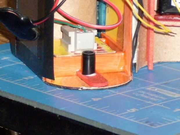 8. Si utiliza la opción carga luego perfore un agujero de 1/8" a través del panel y el radio del extremo del palillo en la línea central de altura y 1/4" de la parte posterior "stud" (ver figura 3). Corte una longitud de 1/2 de bola punto pluma tubo y el pegamento que se centra sobre el agujero que ha perforado. Inserte el indicador de carga LED rojo en este tubo y péguelo en.