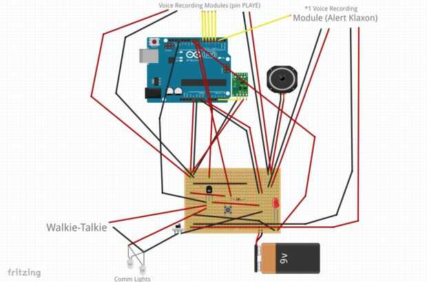En este paso cubre la física (no digital todavía) las partes que hacen que el comunicador trabajan, creo que la mejor manera de hacerlo es mostrar todas las conexiones que he hecho, sé que no es muy ordenado, pero es la primera vez que he usado Fritzing tan por favor, perdóname. No voy a describir todo el cableado en palabras como que muy confuso. Te recomiendo que simplemente estudia el diagrama. Además, cuando usted mira el código en la siguiente sección, el cableado será más fácil de entender.