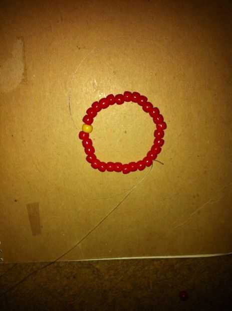 Corte un muy largo trozo de cuerda elástica. Si es demasiado corto, puede agregar más cuando agoten. Poner en la 30 cuenta: todo rojo, excepto el día 18 debe ser amarillo.
