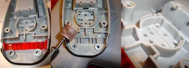 Vas a tener que dremel la parte inferior la mitad del cuerpo en el centro donde se apoya el altavoz. No tienes que utilizar la herramienta de lija redonda pero he encontrado que es más fácil cortar el pequeño espacio que usando un disco de corte. El corte tiene que ser lo suficientemente grande como para adaptarse a la electrónica del laser.