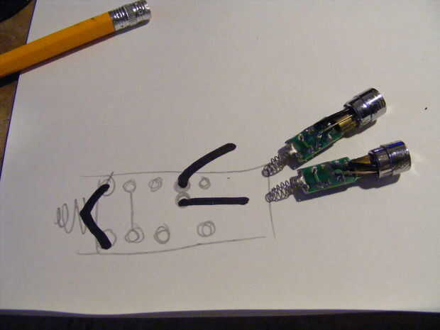 Dibujar un diagrama en donde el poder va a. Puesto que vamos a sustituir las pilas de moneda con un paquete de baterías y reubicar los interruptores, es necesario recordar cómo todo estaba conectado.