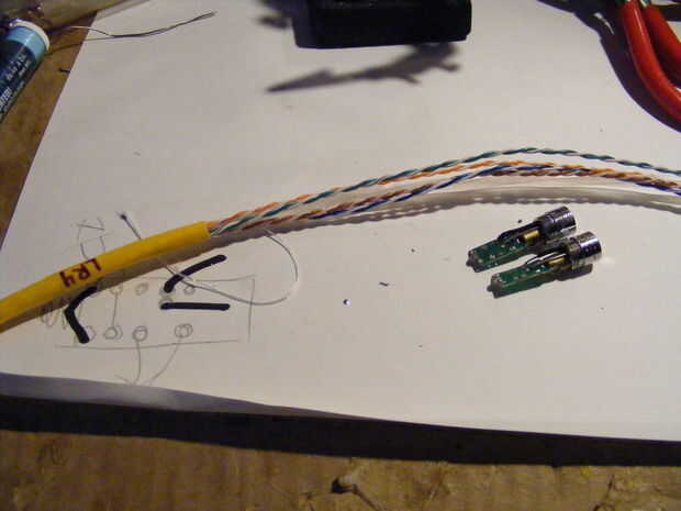 Sólo usé un trozo de cable ethernet cat 5e como mis cables de extensión para los interruptores. Tiene 4 código de colores pares torcidos que hace gran uso para el arnés de cableado.