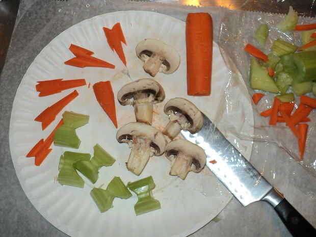 Cortar trozos pequeños de una costilla de apio. Corte una muesca en forma de V de fondo cuadrado en ambos lados. Puede que necesite romper la parte sin usar si el cuchillo no es puntiagudo llegar. Estas son sus cazas TIE.