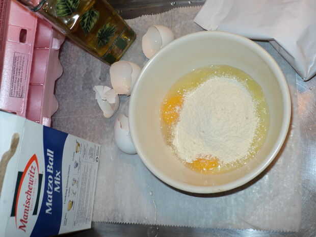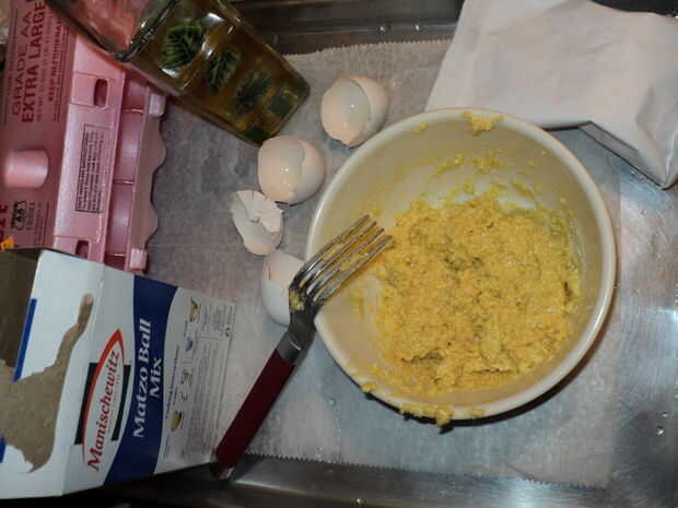 Las indicaciones de la caja pidieron dos huevos, un chorrito de aceite y un paquete de mezcla.