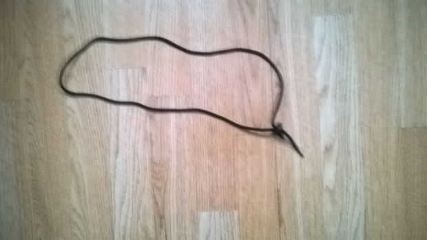 Puso la chaqueta, hacia arriba, donde el cuello se divide, remeter un lado y poner el cordón elástico y la palanca alrededor de él y no para arriba, asegúrese de que usted no ahogarse a sí mismo siendo demasiado apretado, que puede meter los cordones en la chaqueta.