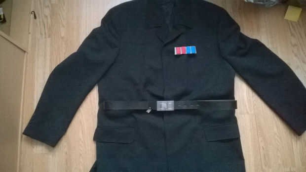 Para unir a la chaqueta, puede cinta un alfiler en la parte posterior.