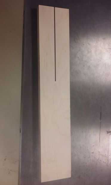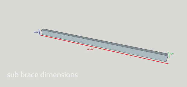 El refuerzo secundario fue hecha por cortar dos tiras de 3/4" madera contrachapada de abedul Báltico * 1 1/4" de ancho por 28 7/32" y corte una muesca del empalme de regazo en el centro de ambos a unirse a ellos juntos. Usé un router de 3/4" bits y un cincel para cortar las muescas. El radio de las tapas fue enarenado en el sub arriostramiento extremos aproximadamente 1/16" con una lijadora de husillo de 2" para que cuando está montado, los extremos de los refuerzos del sub se curvan al contorno de las tapas.