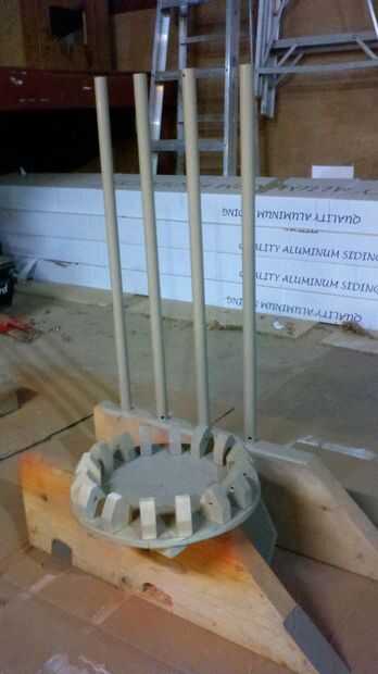 Perfore un agujero en el centro de la base y poner un tornillo en la base de la estructura. Asegúrese de que usted puede tomar el tornillo hacia fuera fácilmente esto ayudará con el montaje y transporte de la misma.