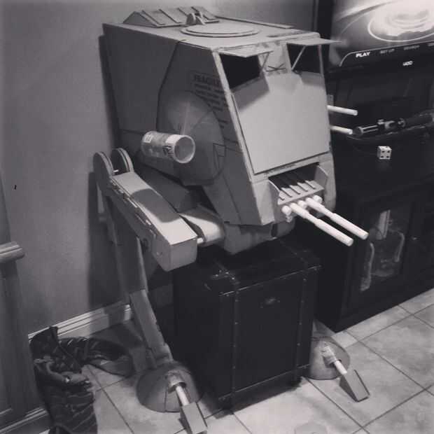 Voy siempre como algo de una película. Ive sido la lámpara de la pata de la historia de la Navidad, el condensador de flujo de regreso al futuro, mapa del tesoro de los Goonies, y este año fui como un at-at de Star Wars. Siempre me que he decidido a