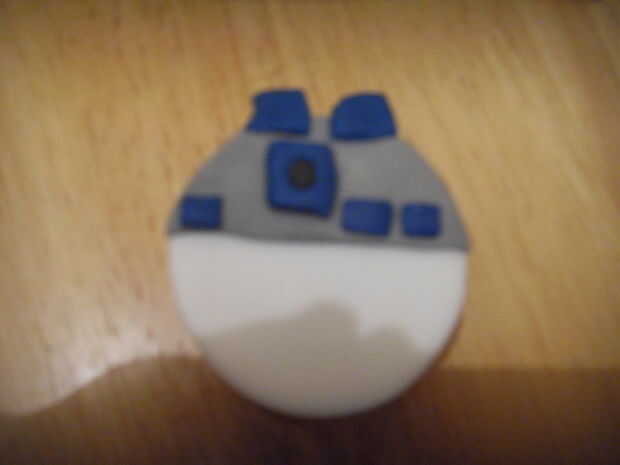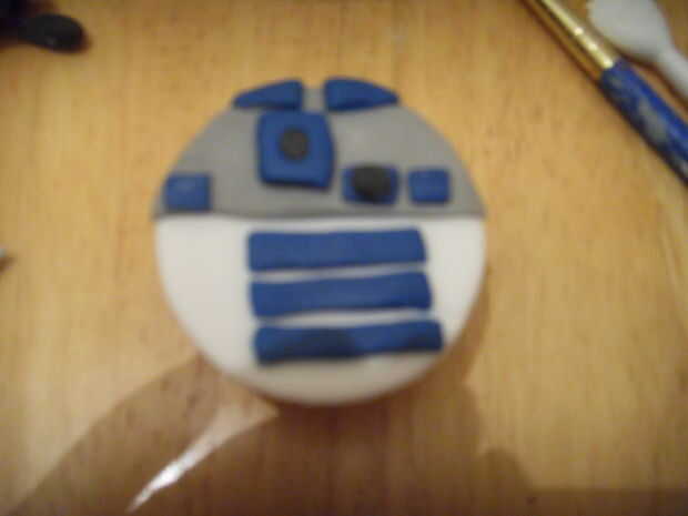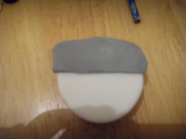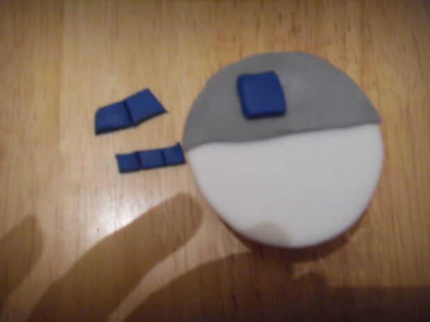 Estirar algunos pasta azul. Cortar 3 cuadrados grandes y 3 pequeños. Pegarse una gran plaza en su 'ojo'.