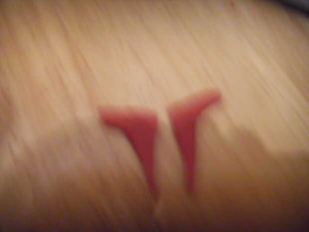 Cortar 2 triángulos de la goma roja en corte una curva desde el borde largo de ambos.