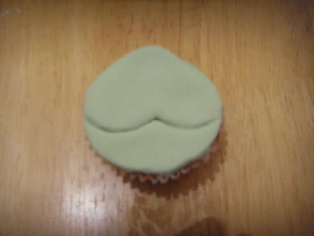 El sujetador de la parte superior de la torta un poco para hacer un poco de un punto. Marcar una boca con la herramienta de filo recta en 2 líneas curvas.