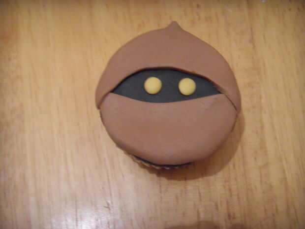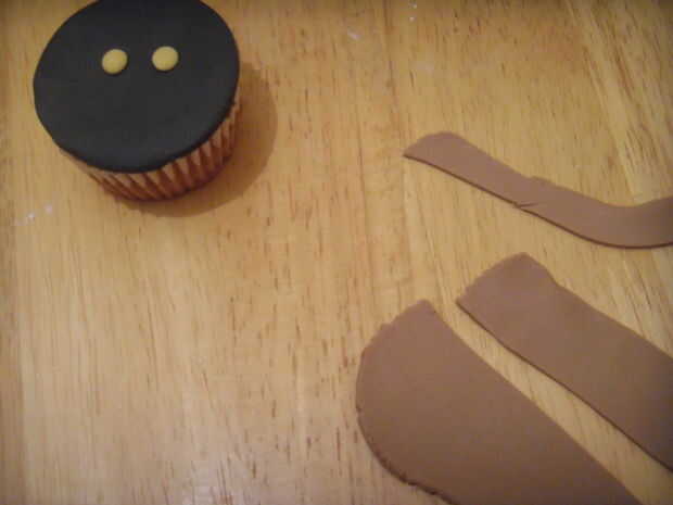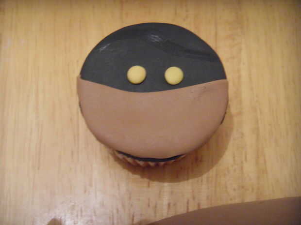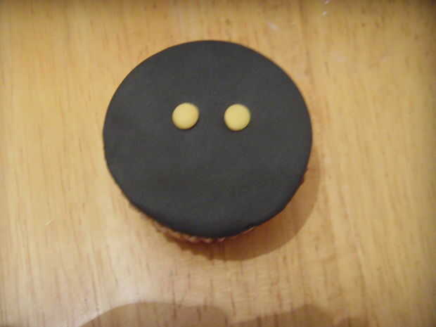 Rodillo de bolas amarillas pequeñas 2. Palillo en la torta de 1/3 de la parte superior como ojos.