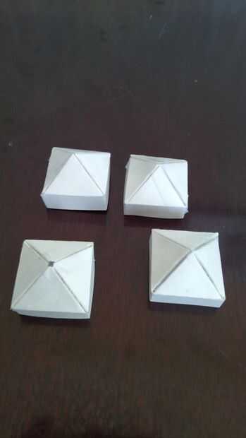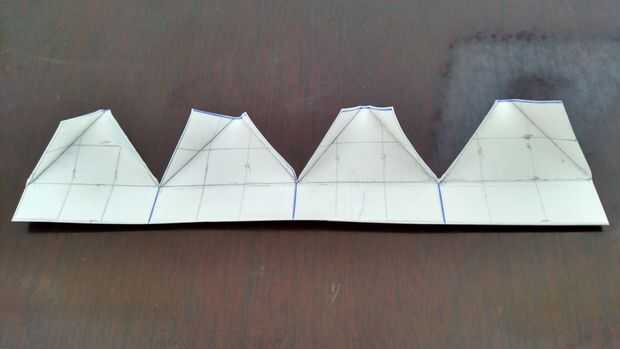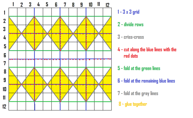11. Ahora que tienes formas individuales, doblarlas, superposición de los triángulos "amarillos" y fijar con el pegamento.
