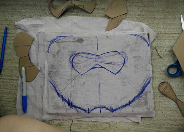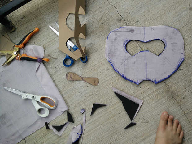 Esta máscara se basa en la versión anterior de máscaras que hice de los mortífagos para usar en el estreno de la última película de Harry Potter. Así que para este particular máscara, en vez de tela solo que toda la base, lo necesitaba para mantener su forma y añadir profundidad por el grueso de las hojas de espuma de artesanía.