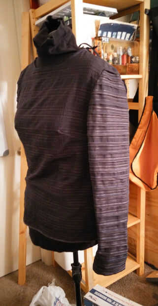 • 2 yardas - thin-ish negro a rayas de algodón ligero (debajo de la camiseta con camisa de capas)