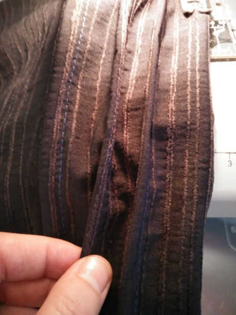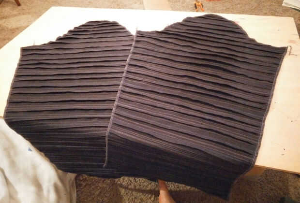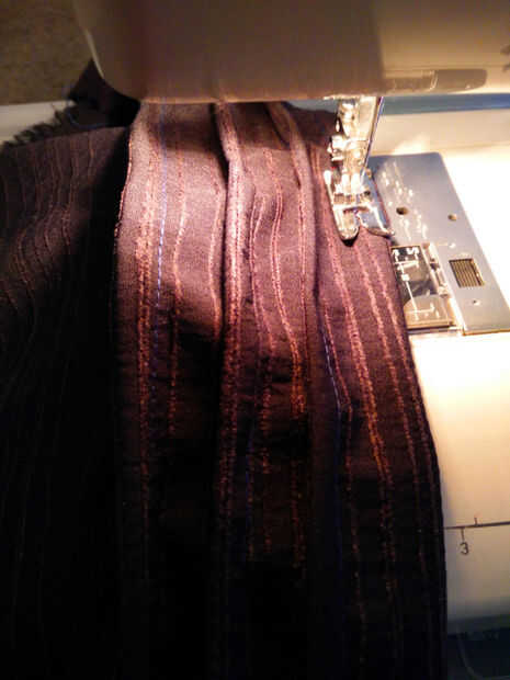 • Preparada a la tela para la manga por coser a 2 pulgadas de tela cada 3 pulgadas. Esto dejará una pulgada entre cada 1 pulgada "aleta/ridge"