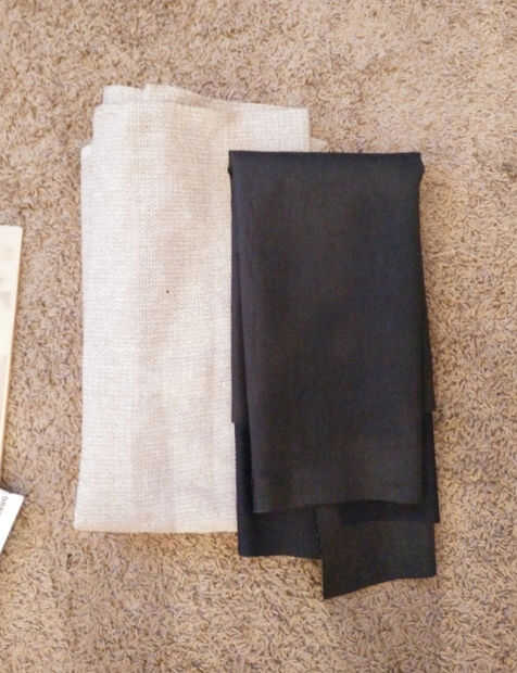 - 1/3 - 1/2 yarda - lona, tela de saco (café) de pato o curso; básicamente debe ser muy rígida y gruesa. (llave del interior de la correa)