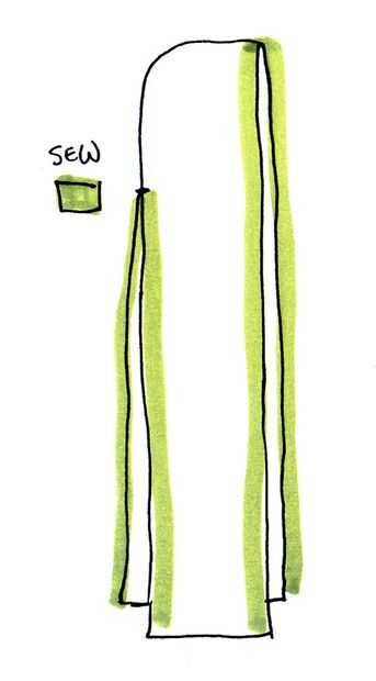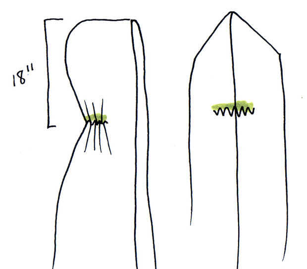 - coser los 2 "llamaradas al final de la donde detuvo la primera (18" marca) y coser el otro lado de la llamarada.