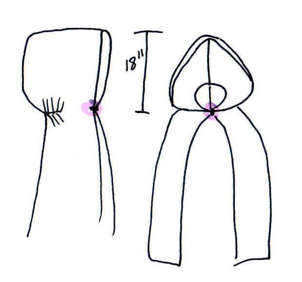 - En el frente, 18 pulgadas o donde crees que es, sujete ambos lados en un solo lugar para que la campana cae correctamente cuando te lo pones. Ver imagen 5