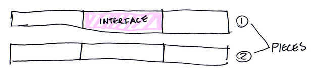 - pedazo largo del doblez en medio con interfaz en el exterior