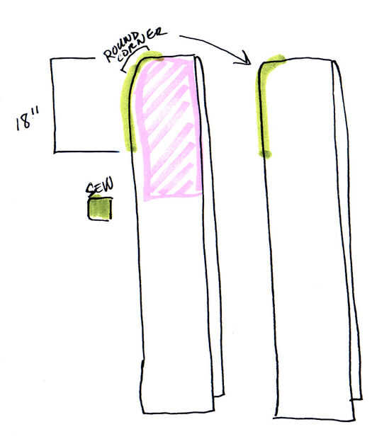 - coser la esquina curva de campana abajo de 18 pulgadas y parada. Ver imagen 2