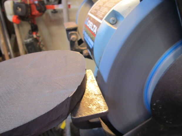 Puesto que los bordes estaban un poco áspero utilicé una esmeriladora de banco para alisar hacia fuera. Pensé por delante y utilizar gafas para proteger mis ojos de escombros pero no pensé en usar una máscara... y mi cara era totalmente negro! Así que no olvides una máscara, si vas para un Darth Vadar buscar:)