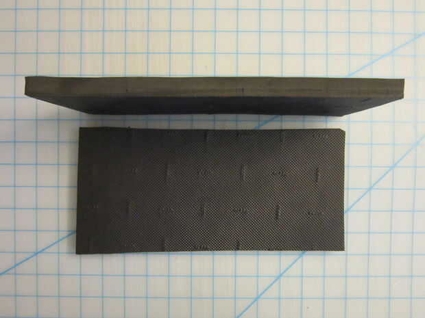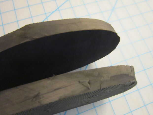 El caucho que compré fue unos ½" de grueso y fue bastante duro cortar pero era capaz de cortar las formas utilizando un cuchillo.