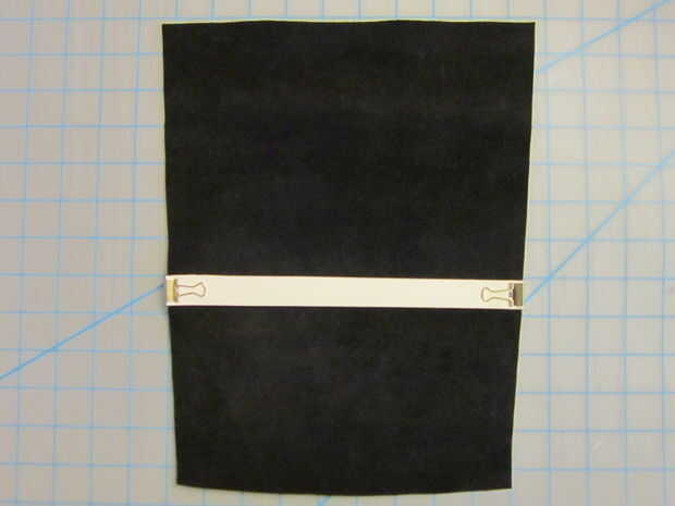 Generalmente no hago un patrón de piezas cuadradas, así para crear la cavidad que utiliza una regla y mide el tamaño que quería el bolsillo para ser. He marcado hacia fuera las piezas de pluma en la gamuza y corta usando una cuchilla giratoria.