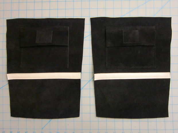 Comencé por coser la tira de vinilo blanco para las piezas de la espalda. Medí la posición en el frente para asegurarse de que las piezas delanteras y traseros alineadas.