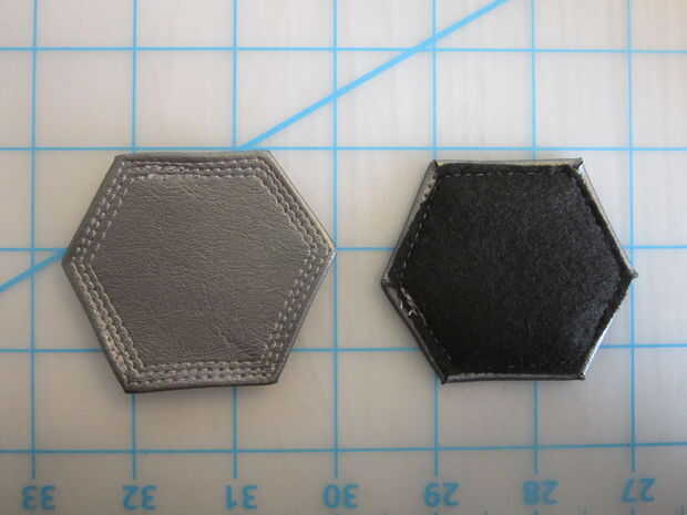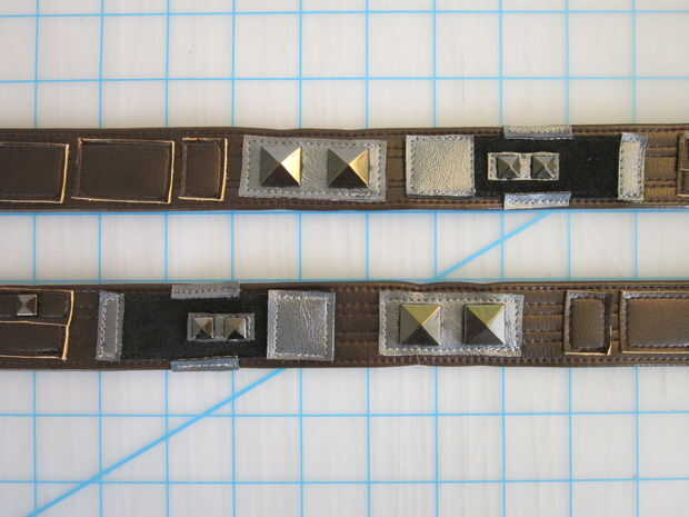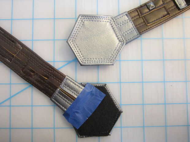 Para acabar con la banda de fondo que he añadido una hebilla hecha de cuero de vinilo gris metalizado con fieltro negro como un forro.