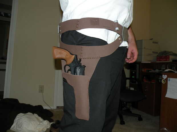 aquí es una manera barata y fácil de hacer una impresionante funda de pistola de Han Solo. Mi novio y yo vamos a Leia y Han para Halloween y su traje no estaría completa sin la firma pistolera del arma de Han Solo. Yo soy un gran fan de Star Wars pero este cinturón no es exactamente a la especificación, hice algunos cambios "creativos".