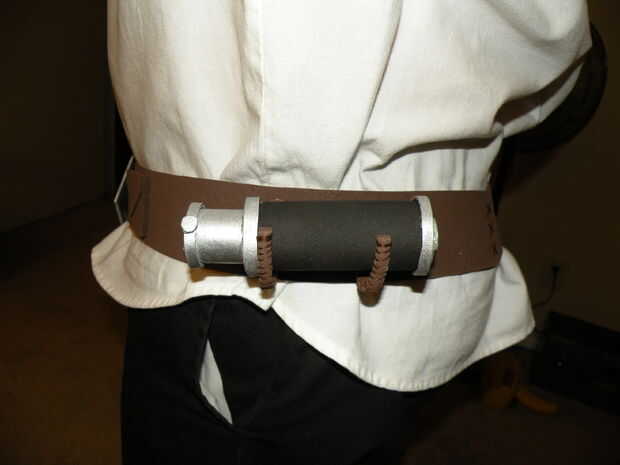 No estoy seguro de lo que el pequeño cilindro de plata en la parte frontal izquierda de la banda es, pero sé que fue en su cinturón en nueva esperanza por lo que he incluido. Sólo hice un cilindro y agregó otro rectángulo para colocar a la banda (Nota: antes de fijar!) También he añadido lo que parece un bolsillo, pero no es funcional y sólo un cuadrado que sobresale de la correa.