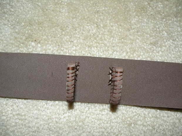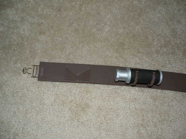 También no quería fijar permanentemente la llamada droid (en caso de que fue golpeado y robado). Tomé 2 perchas de metal y cortar la porción del lazo de suspensión. Después caliente había pegado pequeñas tiras de espuma alrededor de ellos y cosido para arriba y había atado a la correa. Esto podría ser forma apagado si buscas precisión de película pero hace el trabajo.