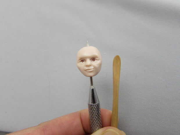 Para la nariz, usé una herramienta de la paleta para recoger la arcilla de los lados de la cara hacia el centro o puede Agregar un trozo de cuerda fina y mezcla esa pieza con el resto de la cara.