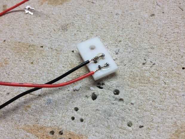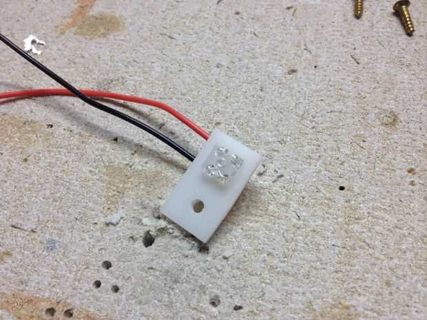 Así que soldar los LEDs en serie en pares (cable de positivo al cable negativo de la otra) y un resistente de 250 ohmios para el positivo del primer LED en la línea de la soldadura. Se puede saber el positivo de un liderazgo negativo en un LED porque lleva el positivo son más largos que el negativo. Hacer esto para todos los LEDs que desee para su base iluminada.